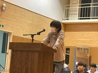 これに応えるかたちで、新入生も一人ずつ前に出て、先輩たちを前に自己紹介と高校生活の抱負を語りました。新入生は緊張しながらも、全員立派に話していました。 新入生の皆さんは、これを機に少しずつ宮二工のアットホームな雰囲気に馴染めるといいですね。