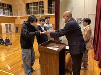 まず、退任する役員から全校生徒へ、これまでの生徒会活動への協力に対する感謝の言葉が述べられました。続いて、校長先生より新執行部のメンバーへ認証状が授与されました。