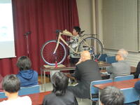 今回は、課題研究に取り組んできた4年生3名が、原動機付自転車の製作をテーマに発表を行いました。製作にあたっては、技術面だけでなく時間的な制約など、さまざまな課題に直面しましたが、話し合いや役割分担を通して協働的に問題解決を図り、完成にたどり着きました。時間の関係で車検取得には至りませんでしたが、4年間で身に付けた専門的な知識・技能を実践で試したいという思いから設定された課題でした。