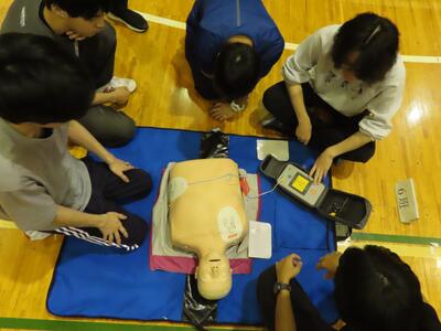 講習では、倒れている人を発見した際の安全な近づき方、意識・呼吸の確認方法、心肺蘇生法(胸骨圧迫・人工呼吸)の手順、そしてAED(自動体外式除細動器)の使用方法について学びました。実際に人形を使った訓練も行い、緊急時に冷静かつ迅速に対応する力を養うことができました。